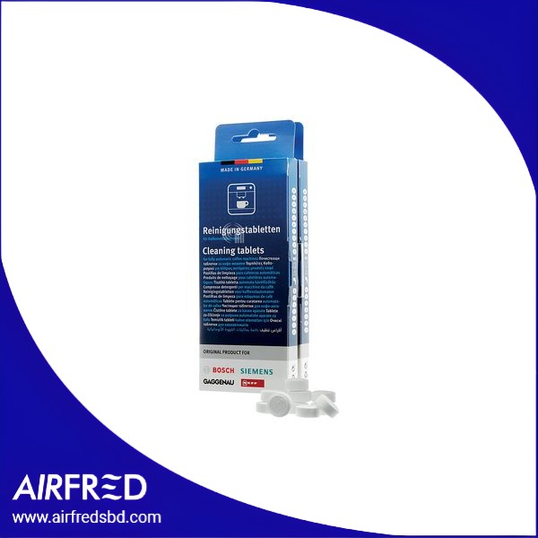 Tabletas limpiadoras para descalcificar cafeteras compatibles con BOSCH y SIEMENS. AirFred ofrece estas soluciones de mantenimiento.